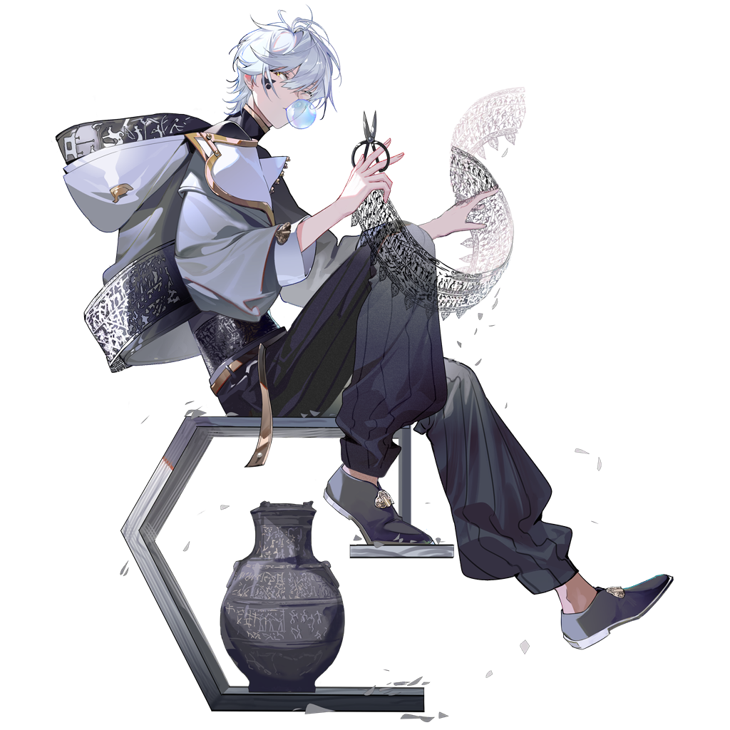 器者外现形象为白发黑衣的少年背包客。和他的“父辈们”不同,器者的本体首次以“人”为主,因此他更关注“人”本身,是一个乐于体验人生的小伙子,热衷关注人生百态。器者双手灵巧,像千年之前为他刻上宴乐、采桑、攻战等场景的工匠巧手一样,他也能将目击的事件做成剪纸小人。本体被称作战国时代的“直播现场”,至今仍以见证者自居,活动在不同的事件现场,且不论事件性质好坏他都会去参与,有时自愿走进危险场所,口头禅是:“我要去看看。”为资料部带来了大量珍贵影视文本实况记录。