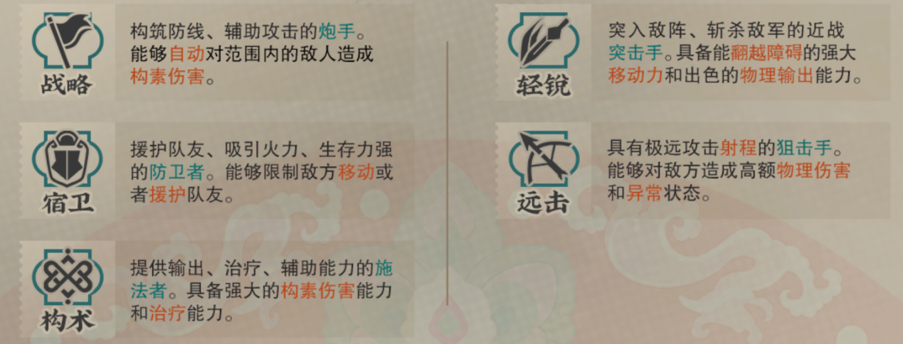 游戏内的角色有五种职业,其中有些定位区分的不是很明显,这里来给大家详细解释一下: