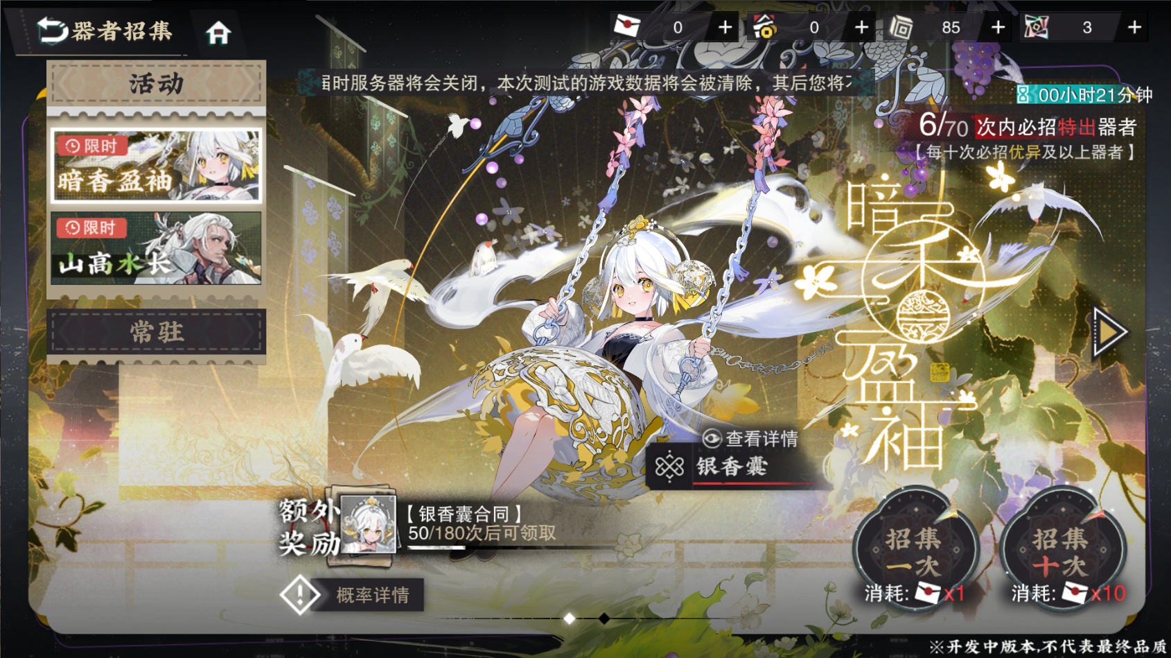 物华弥新依然是一个经典抽卡类的游戏,其中抽卡货币有四种,从左到右分别是:单抽劵,十抽劵,抽卡石头,异形彩铂。