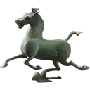 本源介绍: 东汉青铜器。造型为一匹奔驰的威风骏马,三足踏空,一足踏禽鸟,宛若在空中腾跃,整体构思精巧,动感极强。铜奔马的塑造依据了良马式的标准,表现出了河西走马的特点,是西域与中原文化交流的证明。现藏于甘肃省博物馆。 | |||||