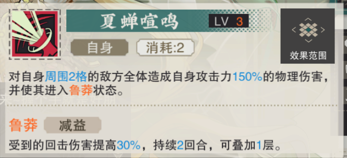 绝技也是对角色周围的敌人造成伤害,值得一提的是绝技施加的【鲁莽】状态使得她可以构建出来一个回击队伍,与鎏金骑士、铜奔马和四龙四风座等角色配合。【理论上回击=反击,只是描述不同】。