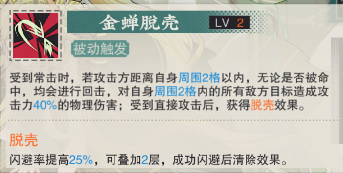 贴脸输出的非常规远击角色,可以通过竞赛手信兑换获得满精。主要通过对周围的敌人回击造成伤害,在自身拥有闪避加成和保命技能的情况下,生存能力意外的好。