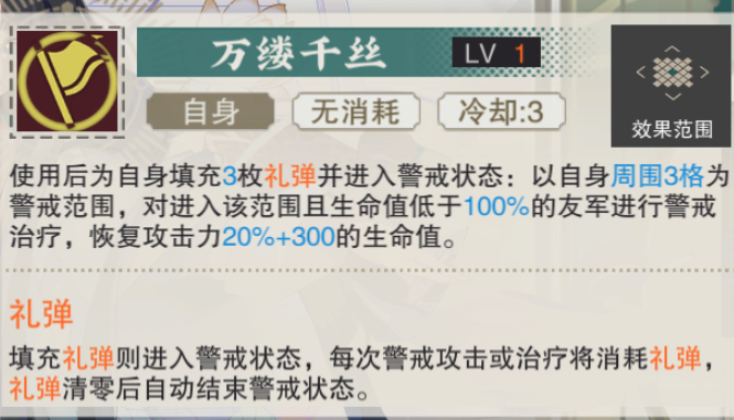 开启警戒攻击后,队友在自身回合进入攻击范围内,且处于非满血量状态时会触发治疗效果。这也就意味着需要主动将她向着易受伤的角色方向移动,在自动挂机和后排的表现一般。