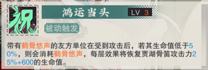 除了主动治疗外,队友还可以收到【鹤骨悠声】的持续恢复效果,无论是敌人的aoe还是单个队友被集火,贾湖骨笛都能做到保证全队的血量优势。