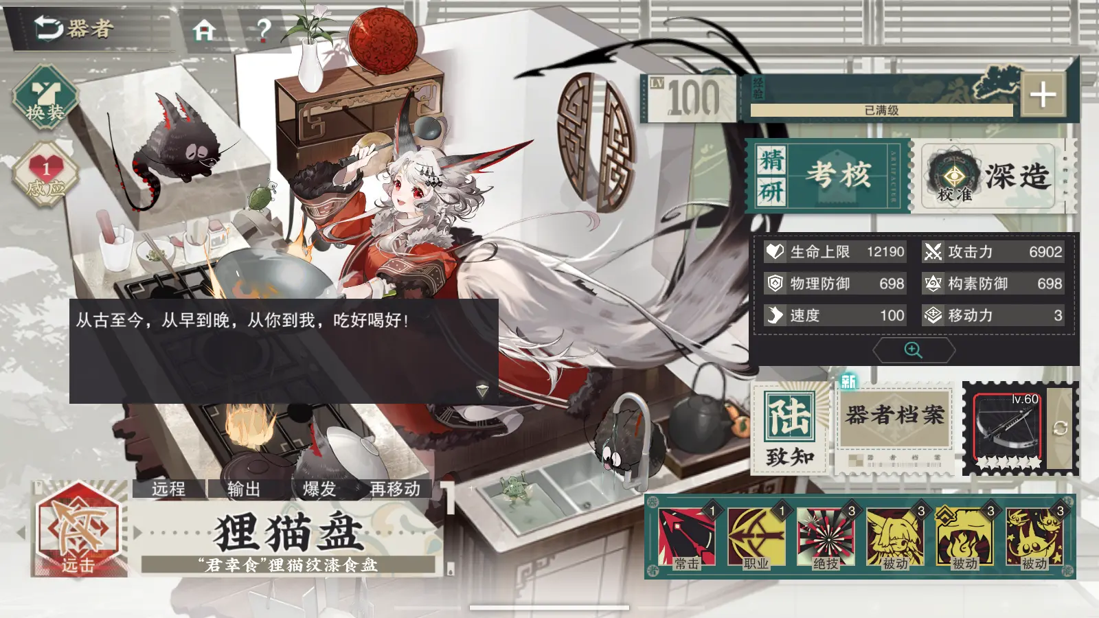 氪金玩家可以考虑直接拉满致知六金杯,狸猫盘有一张就行。当然,资源足够,拉到致知3的话也可以让狸猫盘面对高血量敌人时输出手感更好 更容易造成击杀。