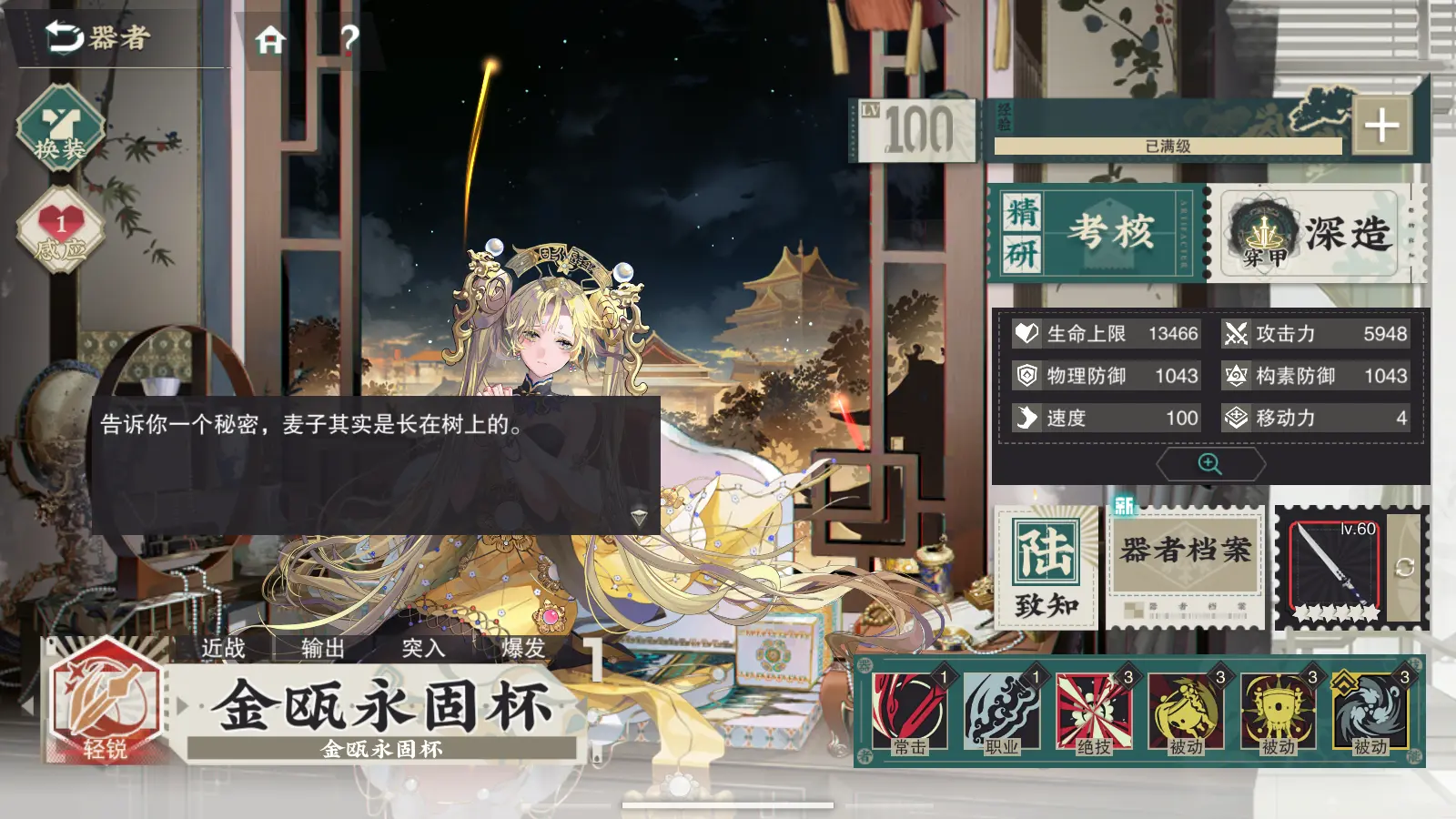 这边给出的建议是优先抽金瓯永固杯。作为单体最强输出,养她就代表着你再也不怕任何boss和单体高血量敌人,而且因为被动额外伤害的存在金瓯永固杯很吃攻击力,致知一加的攻击力收益巨大,致知三更是被动直接质变,让金瓯永固杯在面对一群小怪时可以长期保持满层被动效,也做到一刀一个 。甚至有绝技可以做到一刀多个。可不要前期感觉她没那么强就不练了,她只会越来越强。前期强度已经不低,后期更是无可替代的存在。