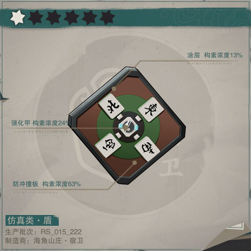 麻雀牌剑·耀 基础信息 麻雀牌盾·耀品质耀职业宿卫类别盾重量18.5KG特性器者力学/抗击卸力装备设计装备攻击力160~869生命值440~2565技能-青铜锐装备者速度增加5/6/7/8/9/10。获取方式巫南研究所装备描述秉持经典,尊重国粹,该装备诞生自某个彻夜未眠、哗啦啦声阵阵的夜晚之后。不同地区的麻将有不同的花色,东南西北坐镇四方,为下一把的手气增光添彩。每位麻将爱好者都有权购买制造图纸的商业授权。 推荐人物