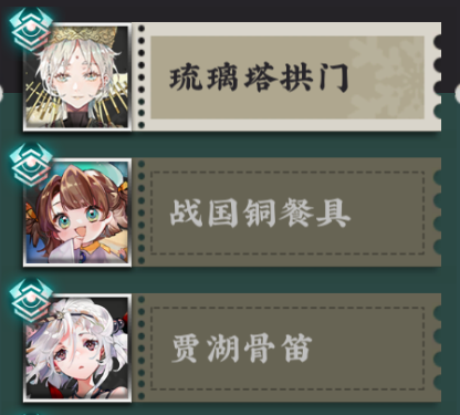第三关敌方阵容如图:琉璃塔拱门(免伤盾)、战国铜餐具(蓝卡之光)、贾湖骨笛(净化奶)、银香囊(免疫奶)、五星出东方(核心输出)、丙午神钩(副c)