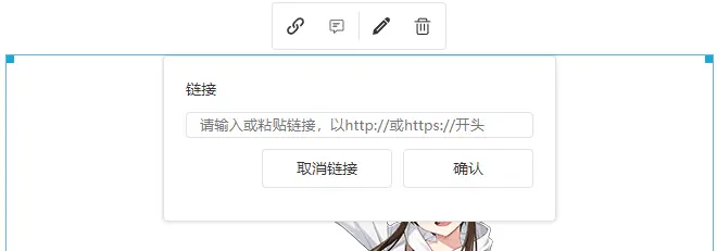 图片也可以添加超链,包括表格里的图片,选中图片后会浮现功能栏,即可点击超链按钮添加跳转地址。