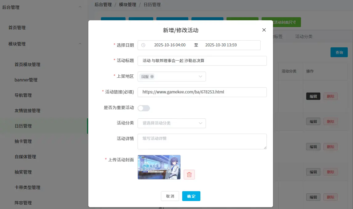 ②为什么点确定页面会报错,BUG还未修复,通常卡池的【角色描述】未填内容,随便填点内容,反正也不会显示。