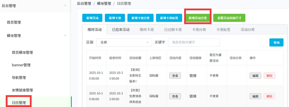 (2)在添加卡池之前,需要先配置【卡池分类】(必填)和【卡池标签】(非必填)