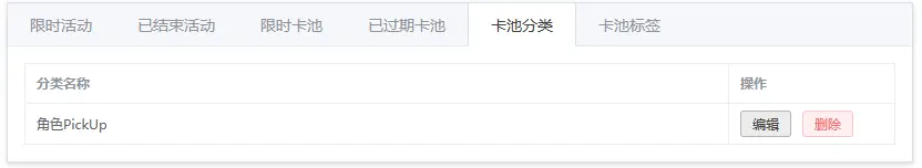 【卡池分类】只能添加1个,添加多个会出BUG。命名例如角色PickUp;
