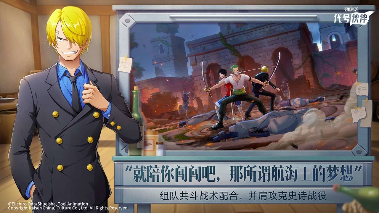 由朝夕光年开发的《航海王》动画改编智慧型手机游戏新作《代号:伙伴》近日宣布,预定10 月26 日于中国展开测试。官方指出,本作是由东映动画正版授权,强调次世代3D 画面表现,同时邀请到原班声优配音呈现原汁原味动画,透过高自由度开放式伙伴养成、多人组队大型团队副本以及多样交互的伙伴和航海船只,尝试为玩家带来一场海上冒险之旅。