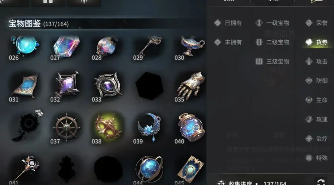 可以用来购买【宝物】,满足一定羁绊可以解锁【圣物】,大幅度提升队伍实力。