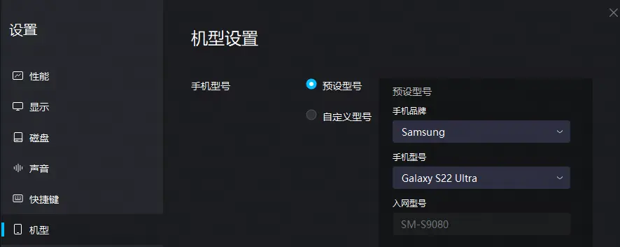 没有找到高帧率功能设置的组长,点击模拟器右上角菜单-设置中心,将机型改为下图中的三星机型,保存重启模拟器即可。