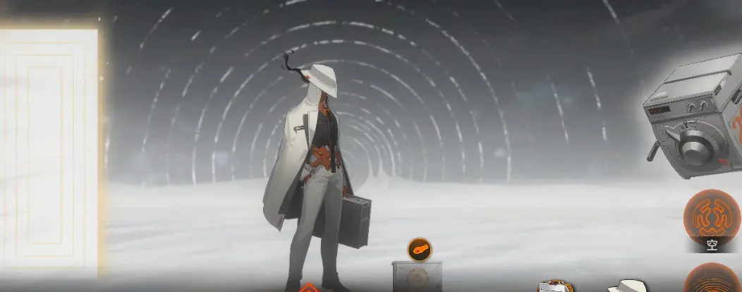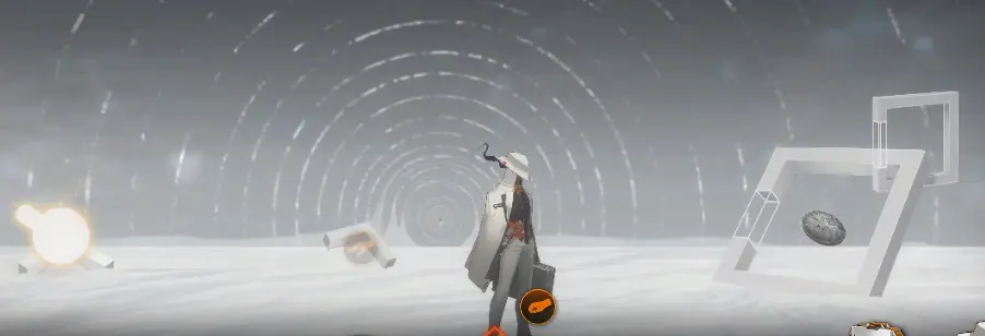 在扫描门左侧放雪景球,右侧放月尘即可进入。