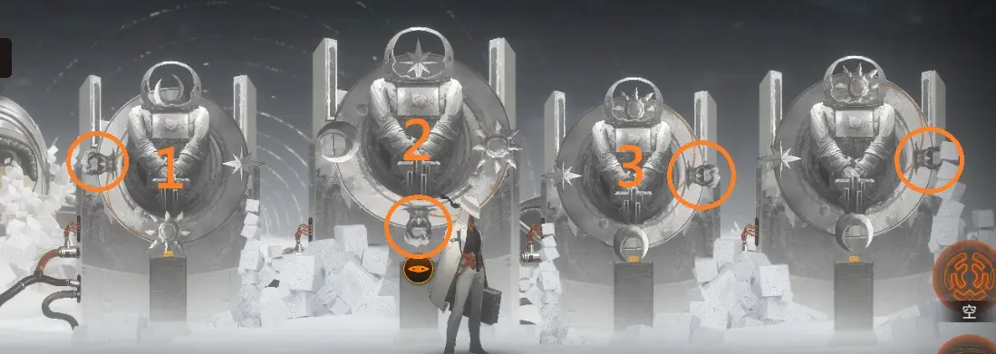 将手上的碎片交给右边回路,再去拿地上的碎片交给回路,即可解开。
