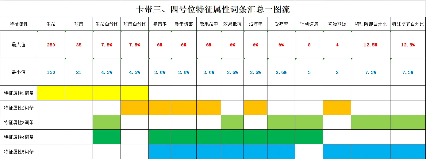 卡带三、四号位的特征属性2、3顺序和卡带一、二号位相反,且特征属性5有不同的词条。
