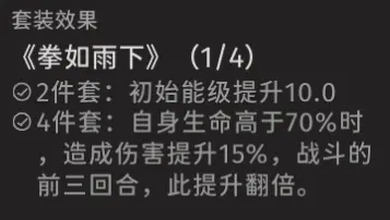 【不倦】当生命低于70%时每次造成伤害后,基于伤害量的1.8%对自身进行恒量治疗。