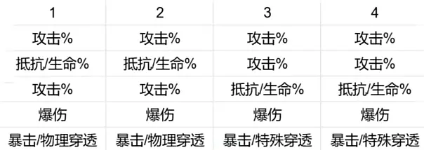 卡带:首推【剪影格斗】4件套,上限最高,其次是2+2,,过渡使用,【红月圆舞曲】适合不想反复凹分的摆子,会极大的减少操作压力,但是上限也就没有这么高了。副词条最优解如下图: