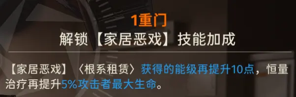 算是提升幅度最大的一个门阶了,可以提升【根系租赁】66%的效果,能级回复提升到25点、恒量治疗提升到12%攻击者最大生命,都是非常可观的数值。(夜来四级超限技的能级回复是28点)