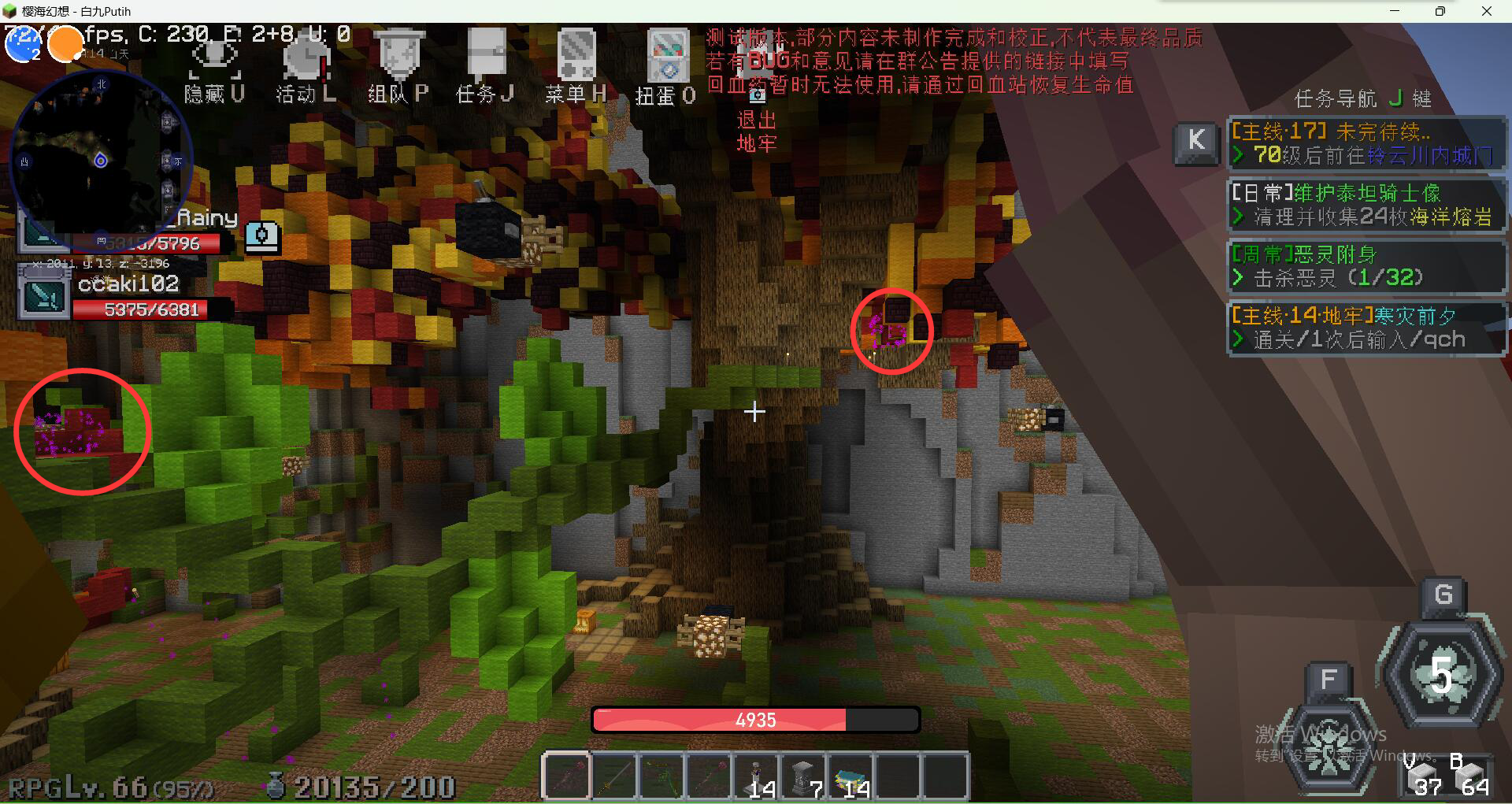 这个场景的主要流程是找到树上的三个紫色粒子球,并将其击败,位置如图(三个球都可以通过双击空格的二段跳+滑翔伞到达,对操作有一定需求)