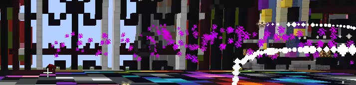 紫色波状粒子攻击,触之即死,只会放一波,放之前boss会瞬移到场地中间(也就是你打完了个紫球后),速度不是很快,稍微留意下弹射起步就可以躲过去了。