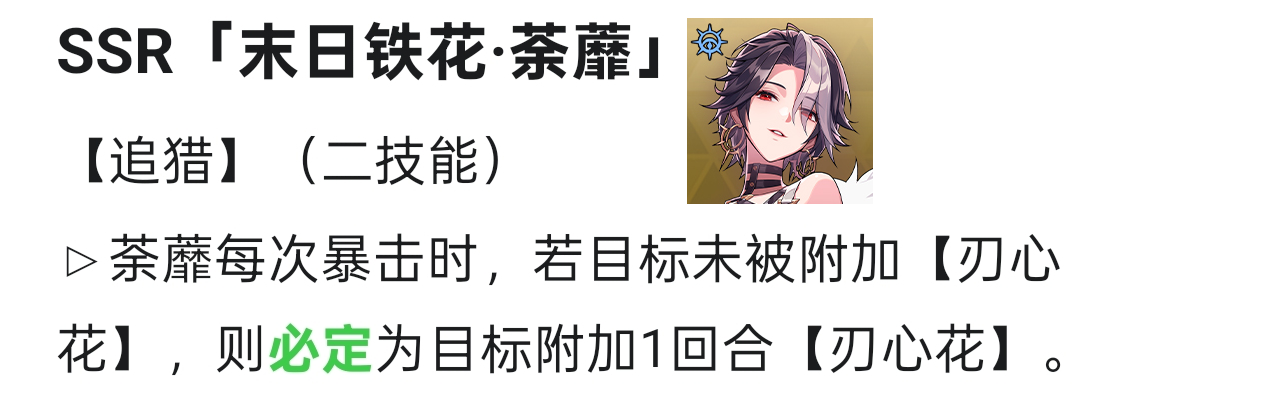 本次调整使荼蘼的出伤更加稳定,解决了刃心花有概率缺失的痛点,可以放弃效果命中转去叠加更多输出相关词条,无论PVE还是PVP都有所提升。