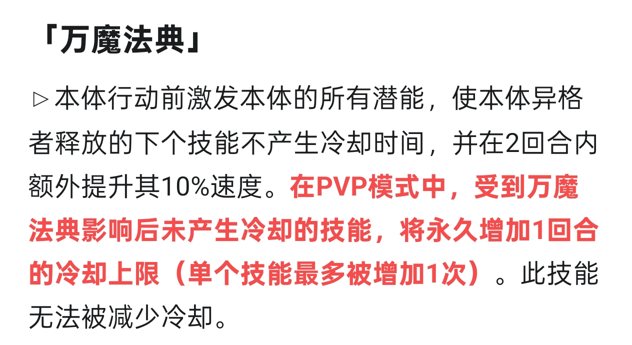 增加触发效果的技能的冷却,使万魔法典不再适配长线战斗