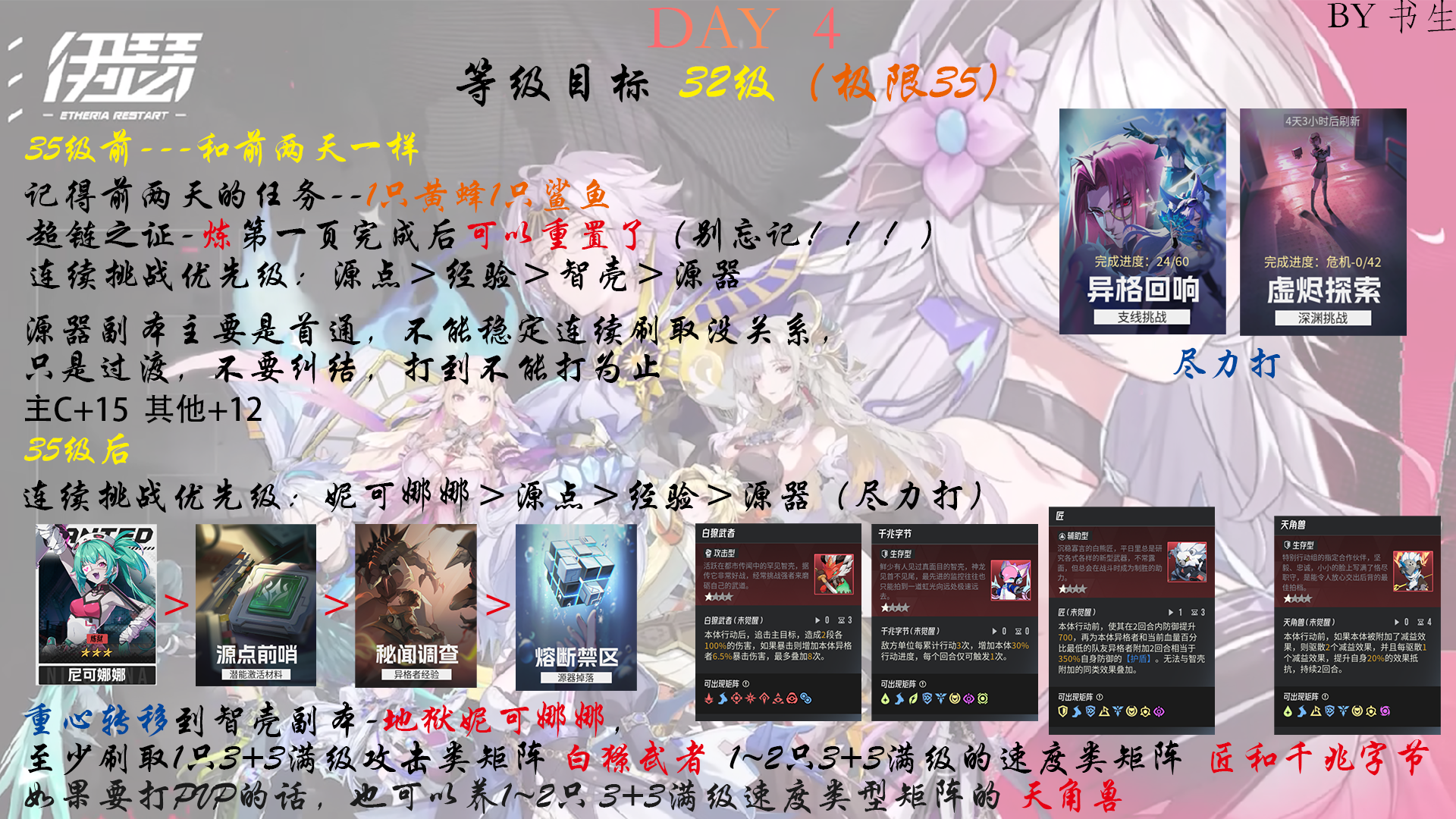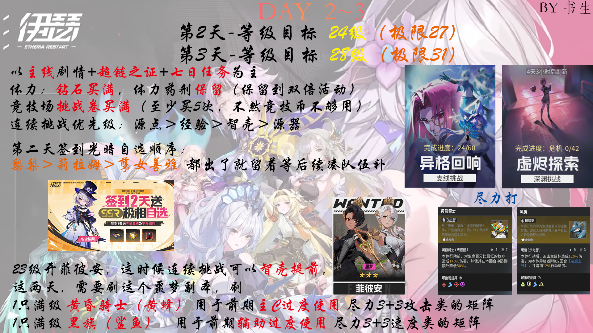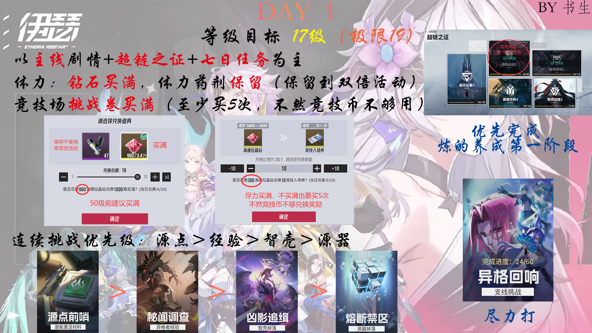 每天体力尽力买满,如果需要强娶夜离或者逆翎记得留2w左右的钻石哦。
