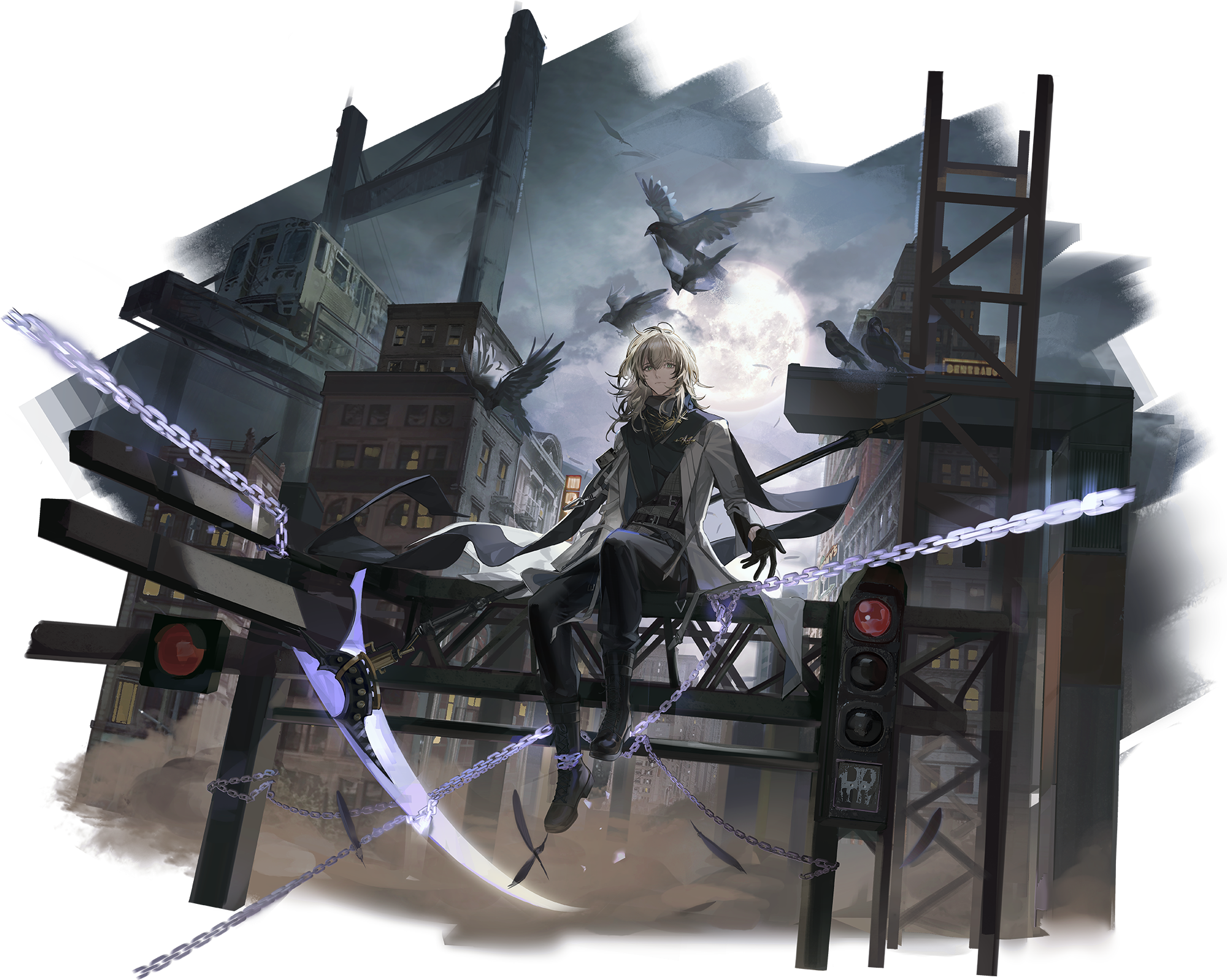 一位沉默、可靠的帮手,那把罕见的巨大镰刀能够造成与其型号成比例的巨量伤害。除此之外,他的出场往往伴随着成群结对的乌鸦,和的夜晚。
