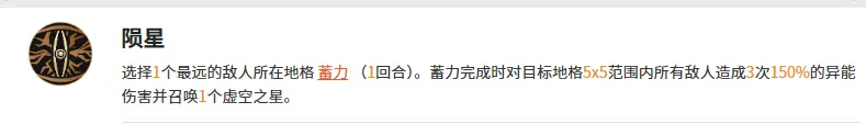 该技能为Boss的核心机制,召唤虚空之星后虚空之星会立刻进行一次行动。在虚空之星5*5范围中,将获得“超重”的Debuff。