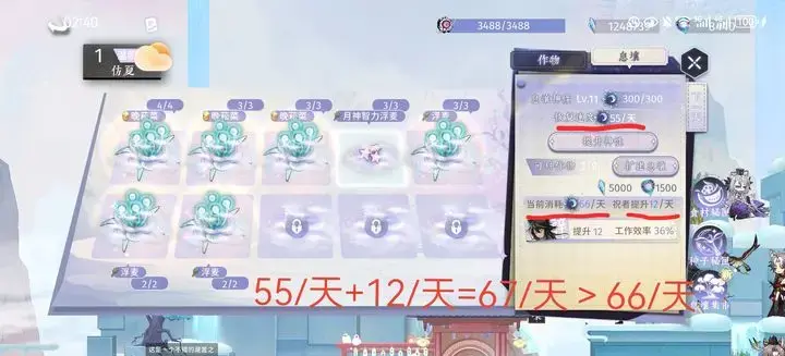 一,满足神性和息壤。自然补充神性是天数的推进自己循环回复(每天回复自身上限的一半,会受菜的需求进行第二天结算),而息壤土地恢复速度受自身神性C(通过材料提升)和入驻祝者属性D(通过提高好感)影响,每块息壤单独计算。而等厨房系统开放后可以人为补充神性了(神性药,补充神性也加最高上限)