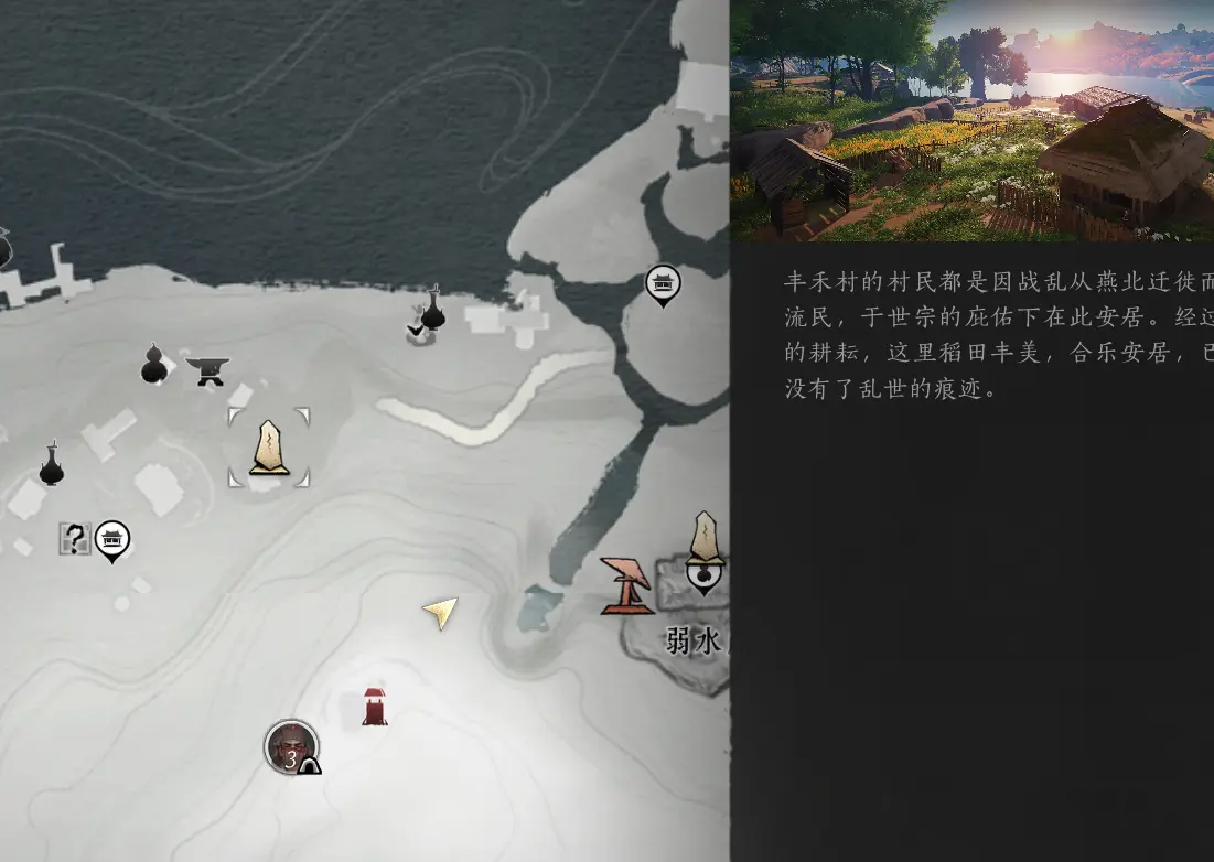 最后就是丰禾村西北方向了,和他对话然后做个菜给他,让他讹你一千,就告一段落了。