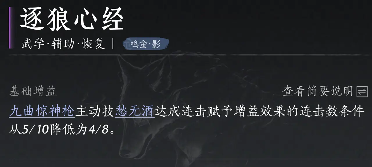 逐狼心经(金) | | 偷师·九曲惊神枪据点中开启所有宝箱(前置需完成清河·探游·偷师有道) | |