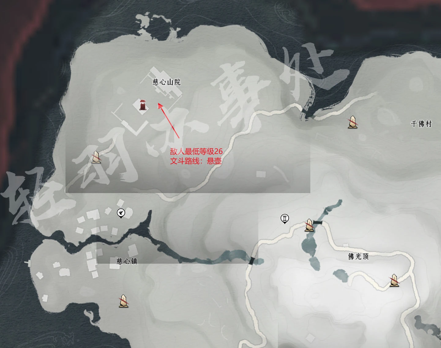 春雷篇(丝) | | 首通清河·据点·慈心山院(接近正门后,可用悬壶剧情快速首通,悬壶造诣建议3900) | |