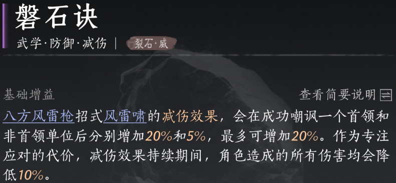 磐石决(石) | | 首通开封·镇守·无忧洞奖励,需击败首领道主。镇守的前置任务是需完成开封主章【平地风波·灰坑】 | |