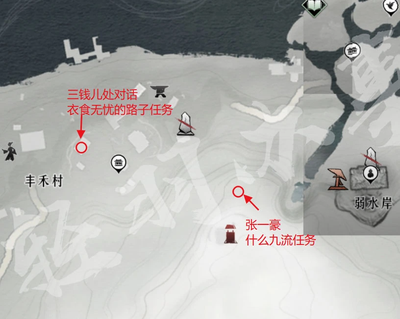 抗造大法(石) | | 完成清河·丰禾村·奇遇·什么九流 接取方法一: 1)先接丰禾村任务衣食无忧的路子(该任务无论结局是什么都没有奖励也没有成就),前往丰禾村找三钱儿询问天泉的入门方法,选给钱 2)根据任务指引找到天泉长老,按要求拿到张一豪身上的“一大堆珠宝”。 3)回去找天泉长老后他会告诉你其实他是九流门的,注意此处如果选“既然来之则安之”会自动加入九流门获得粟子游尘武学;如果选择“不能忍”会发生战斗,击败他们结束。 以上2种情况都可以去找张一豪触发奇遇·什么九流。但是好像跟现实流速有关,没有触发的少侠可以现实第二天再去找张一豪,奇遇不需要对话会自动出提示。 | |