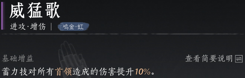 威猛歌(金) | | 首通清河·据点·佛爷寨(接近正门后,可触发剧情用建造玩法削弱据点) | |