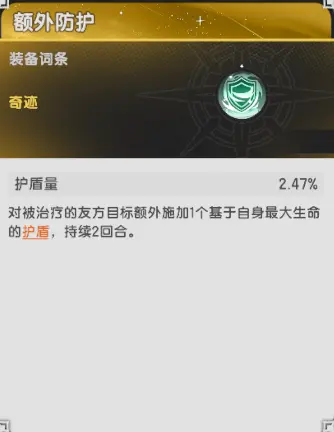 1.拥有护盾时减伤 为S1.源水大社抵御套效果,于S2加入装备词条。