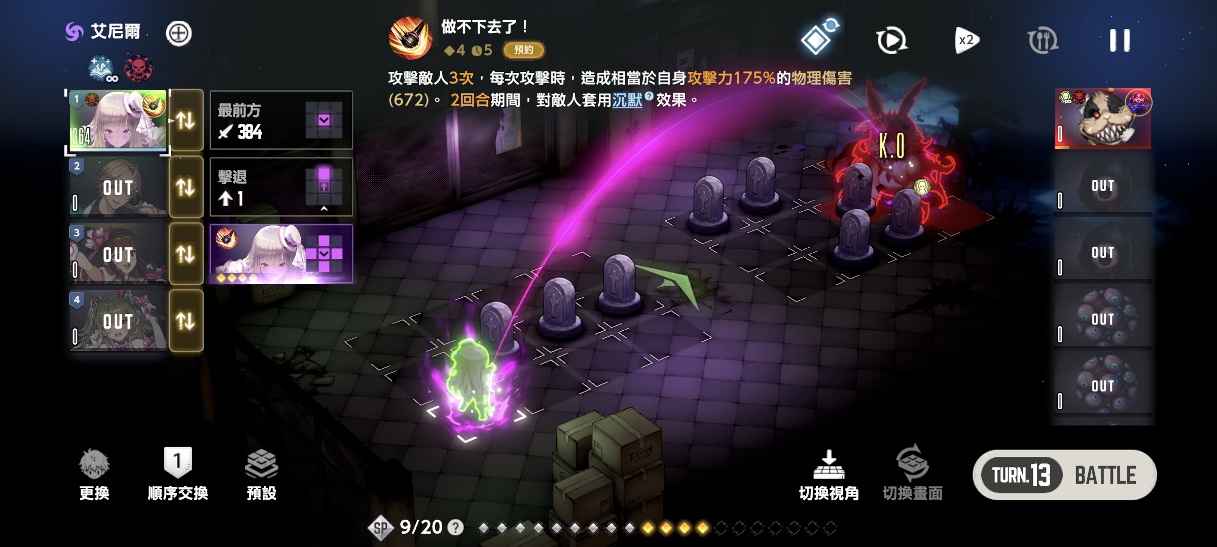 第一回合只能打死两只怪,主要是用艾尼尔沉默两个肉球怪