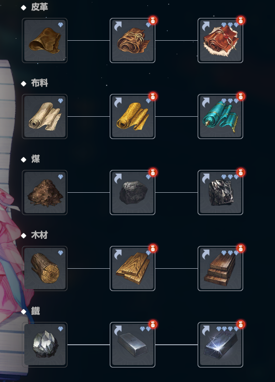 - 需要不断制作装备,升级天赋技能,才能制作后面的装备。