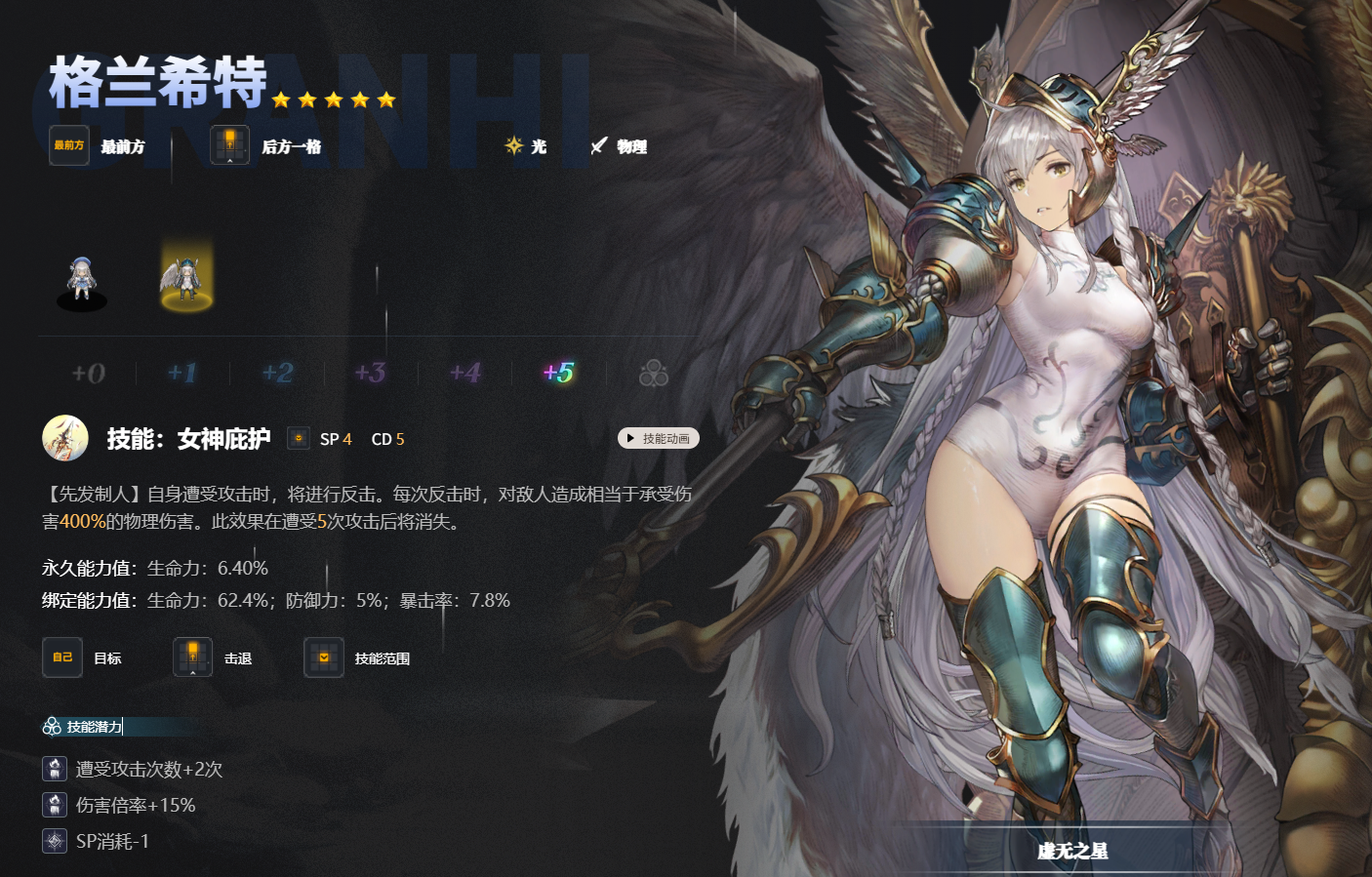 +2偶像皮是CD5(+1则是CD7),150%生命盾; +2原皮则是被击5次的250%反击伤