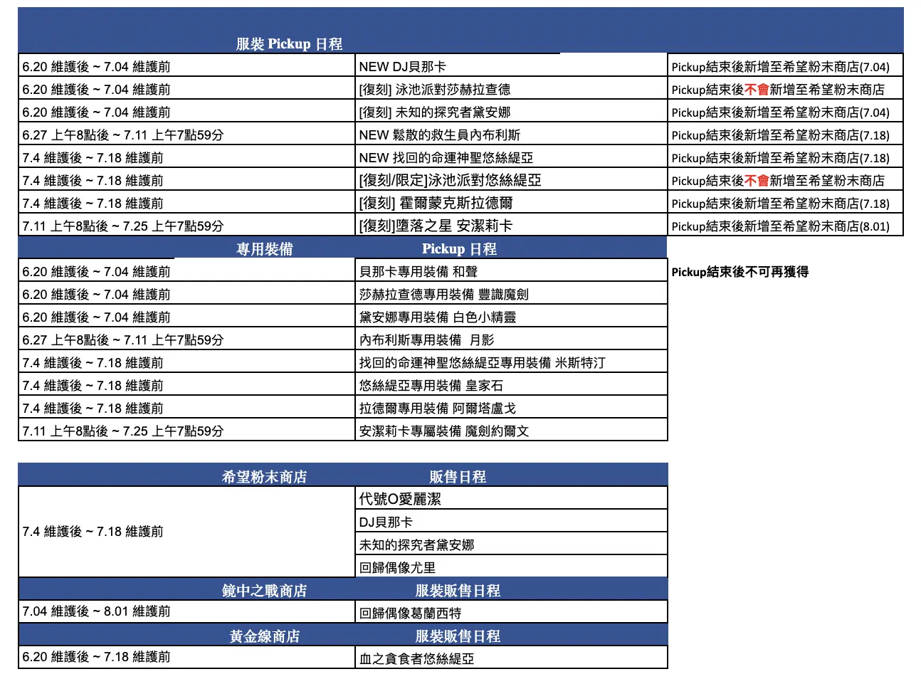 * *目前进行中的POST:SUMMER KNIGHT赛季活动商店将在活动结束后维持开放7天。在此期间,可以使用剩馀的活动货币兑换奖励。