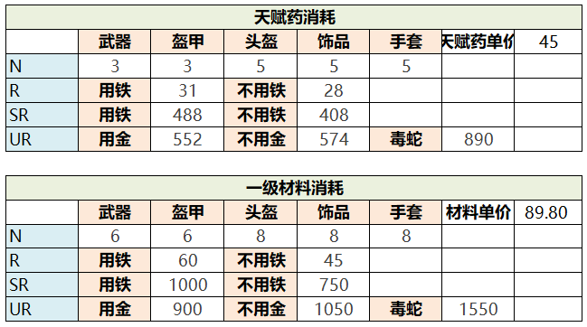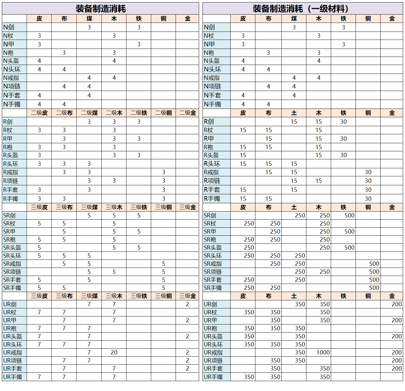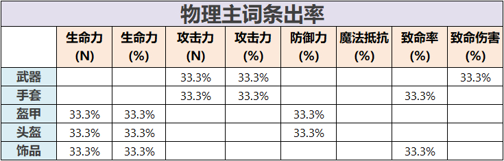 装备相关的各种数据