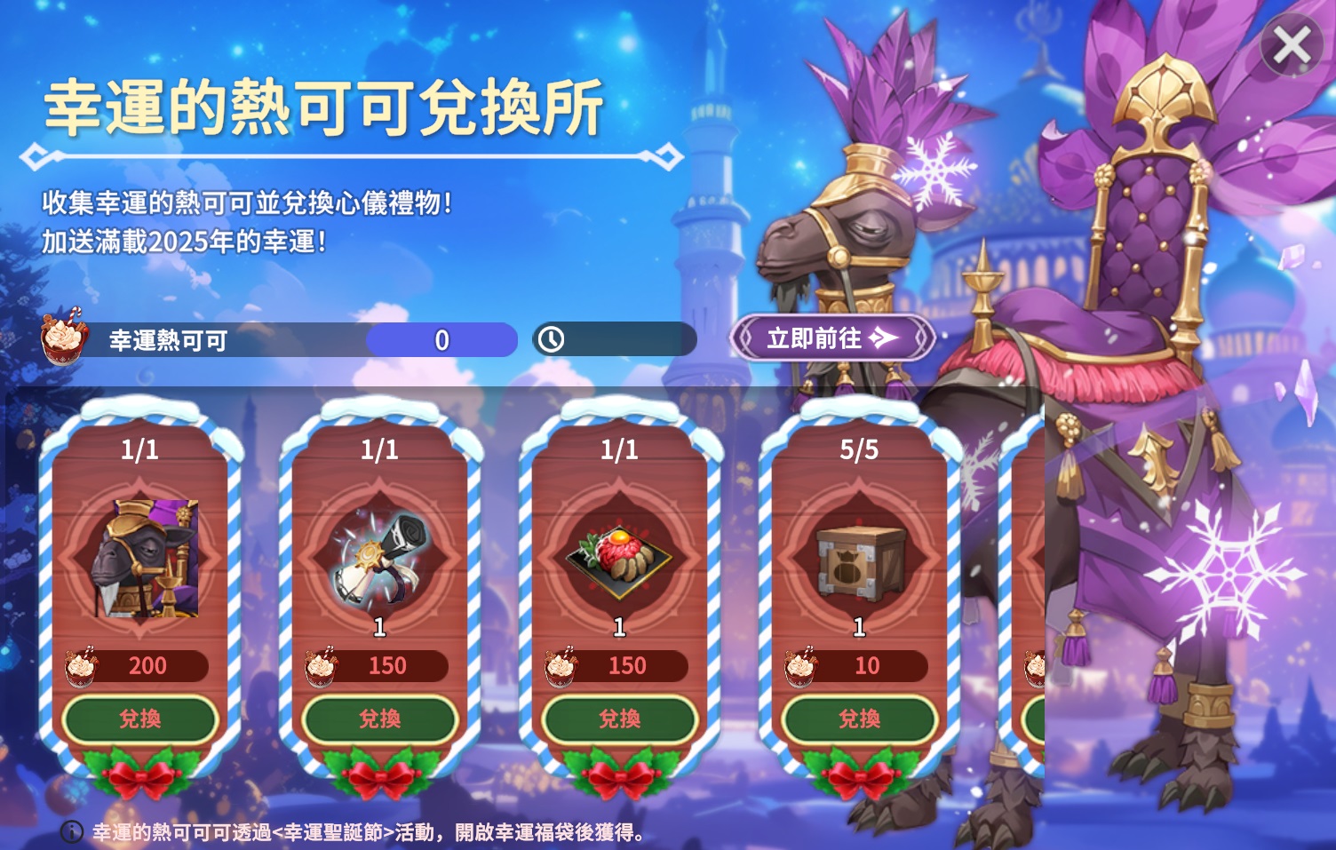 - 內容:* 收集幸運的熱可可並兌換心儀禮物!加送滿載2025年的幸運!