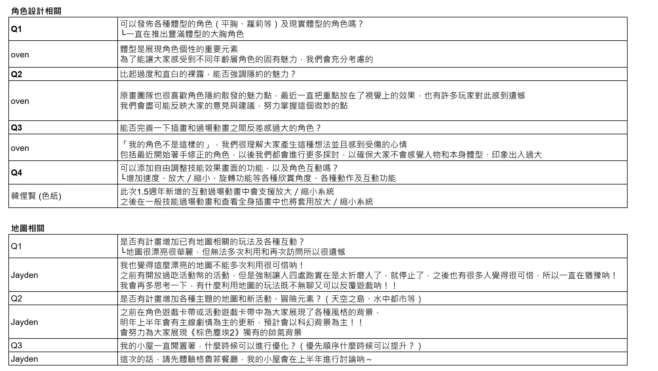 以下是根据在问卷调查中许多玩家向开发团队提问的内容,所整理出的回答。