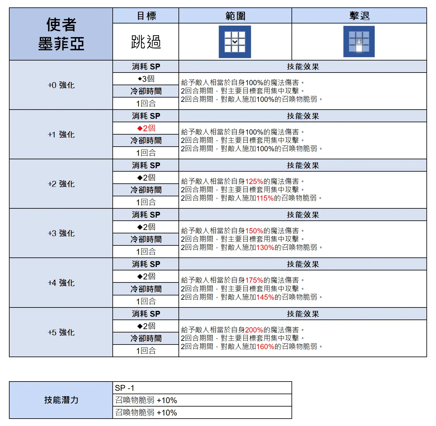 使者墨菲亚的定位是属性主c的强力自buff皮,性质跟原皮米卡差不多,但是1cd1sp,九宫格,还有集中,技能模版实在太优秀,在非boss战环境可以完美充当补伤害的副c。不过1cd这个在魔兽和会战环境里完全没用,整场战斗只在最后一回合的时候放,cd多少都无所谓了。