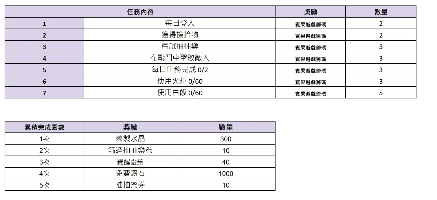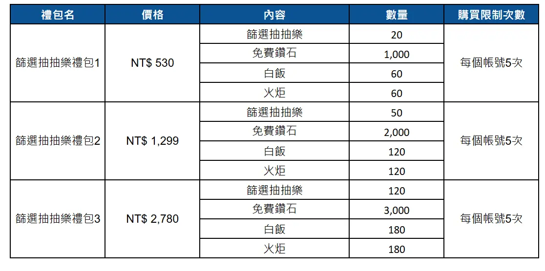 - 即使签到礼包贩售期间结束,只要尚未领取完毕,礼包仍将保留,直至所有签到奖励发放完毕。