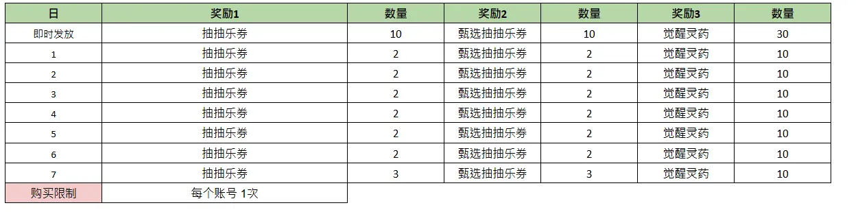 - 购买礼包后可立即获得首次奖励,并可依日期每日领取相应奖励。